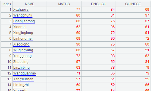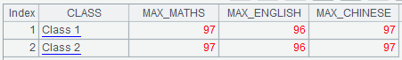 The impression of above results can be said to be very bad: first, in the “class” column, the repetition of Class 1 and Class 2 makes it easy to misread; secondly, in the “subject” column, the three subjects of Chinese, Mathematics and English are all put together, but in fact, the highest scores of the three subjects have no comparative significance.