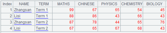 In this result, each of the three subjects in the subject column is separated as a single column respectively, which not only reduces the useless duplication, but also clarifies the mutual independence among the highest scores of each subject, and seems to be much clearer.