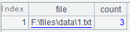 | 1 | =directory@p("F:\\files\\data").new(~:file,(a=file(~).import(),a.fno().(a.field(~)).id().count()):count) |