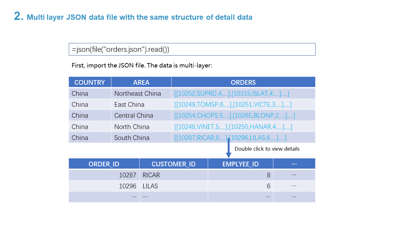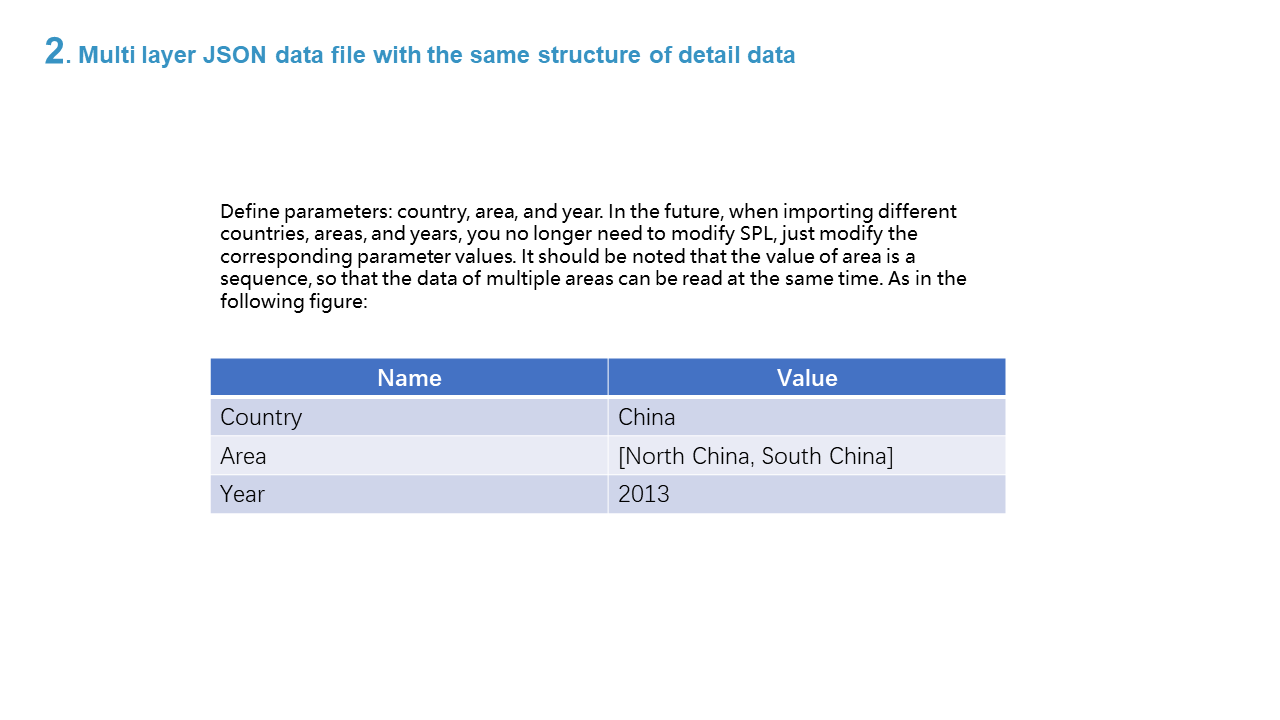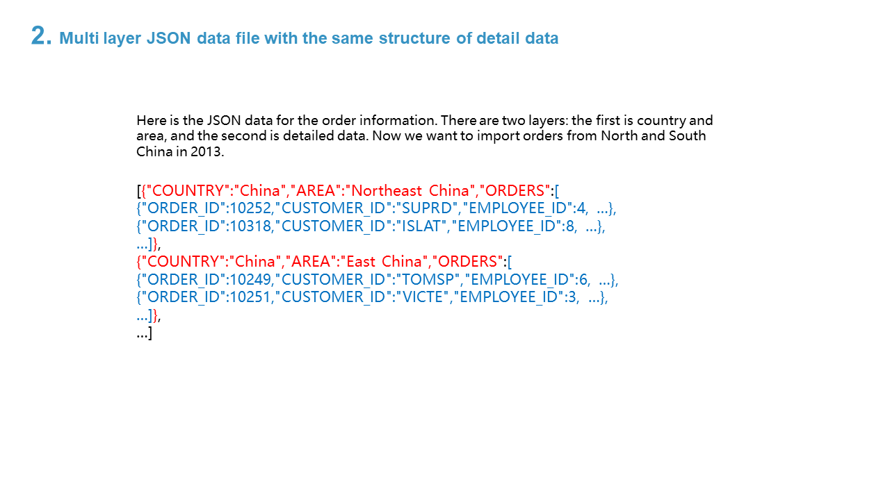 2. Multi layer JSON data file with the same structure of detail data