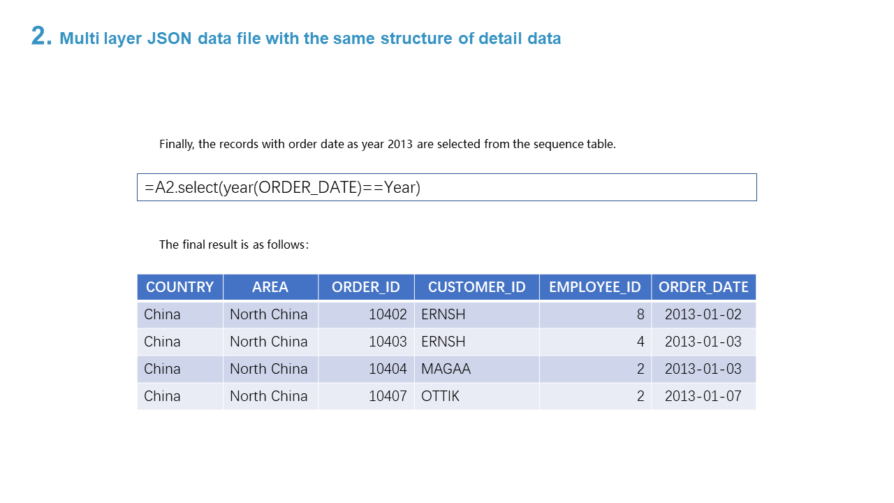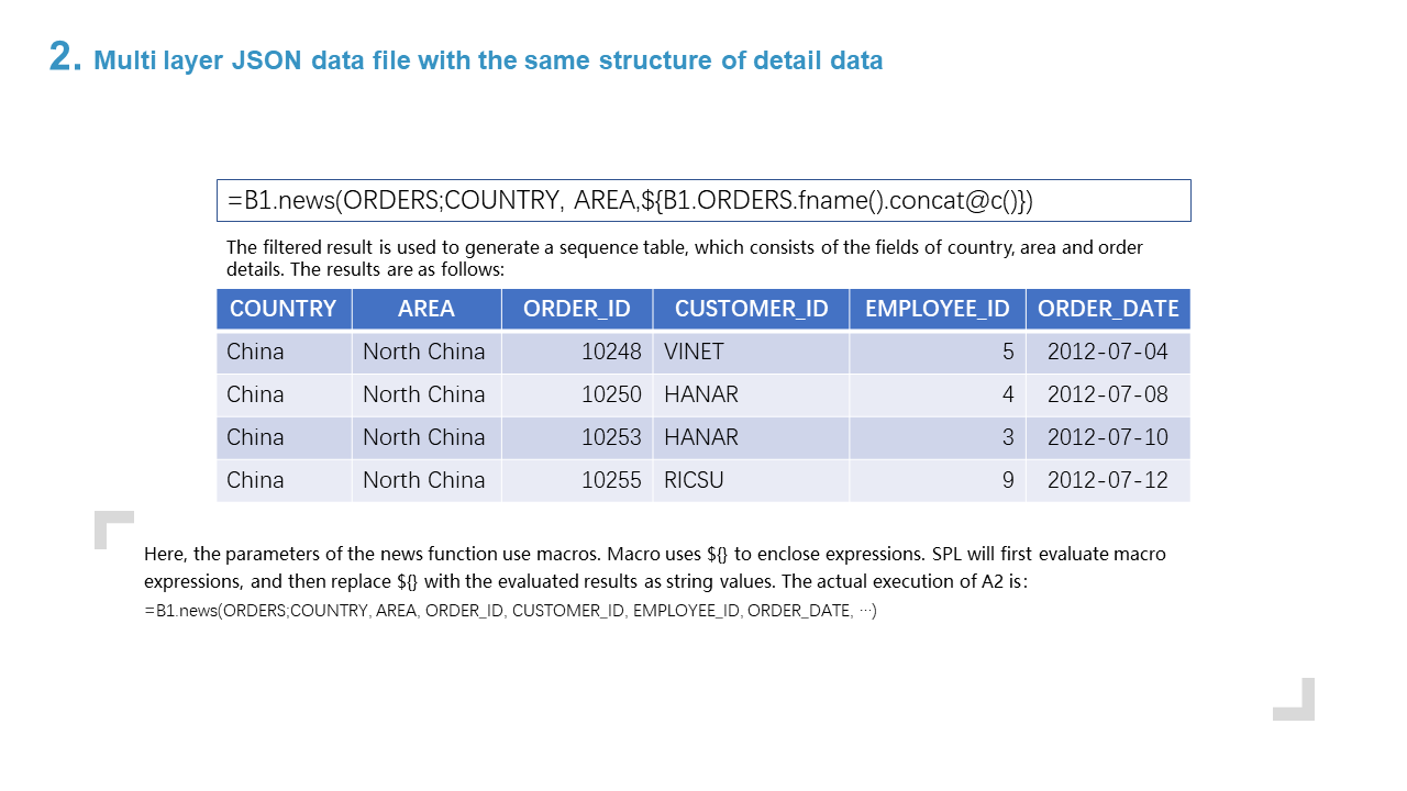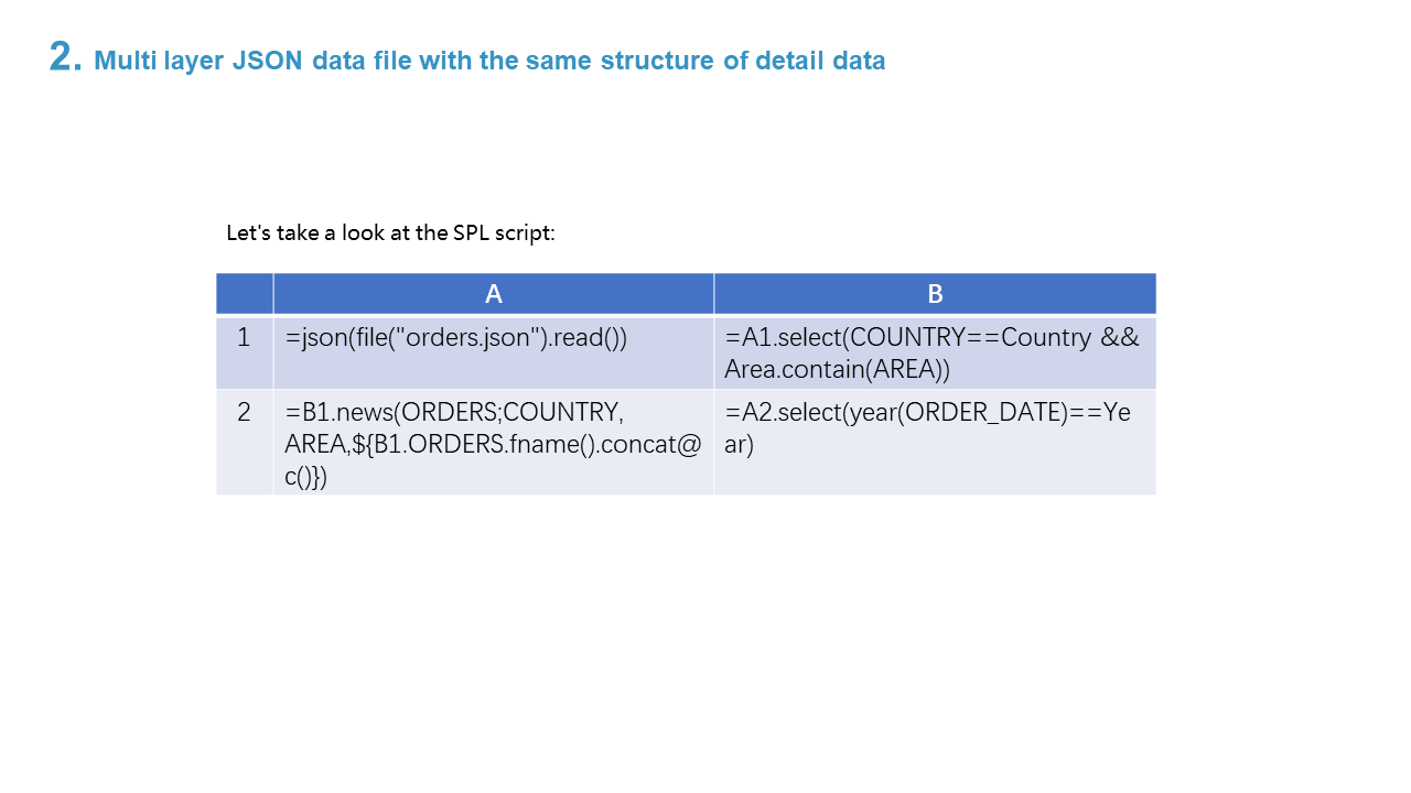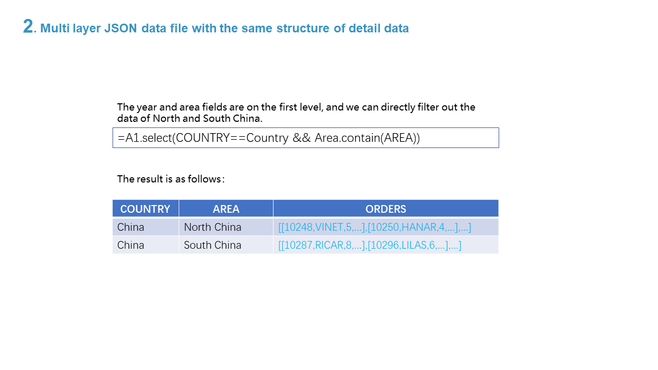 2. Multi layer JSON data file with the same structure of detail data
