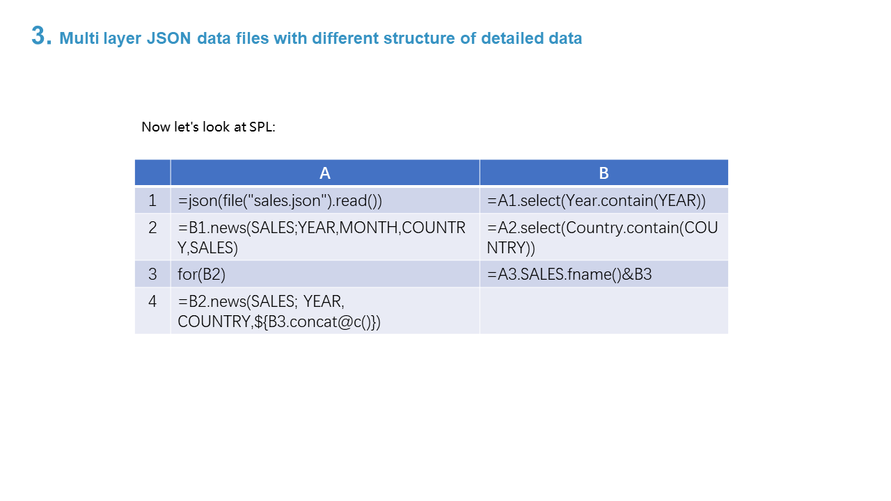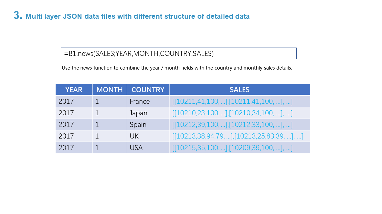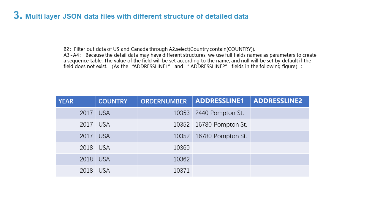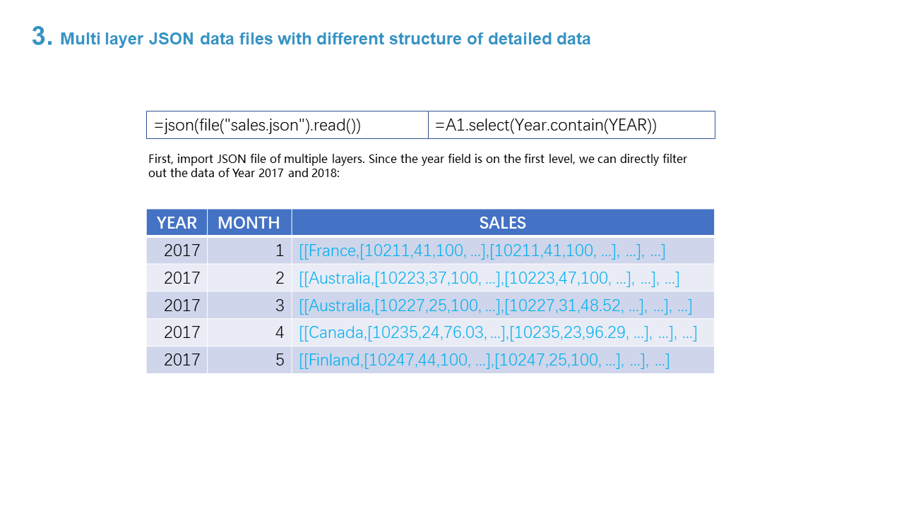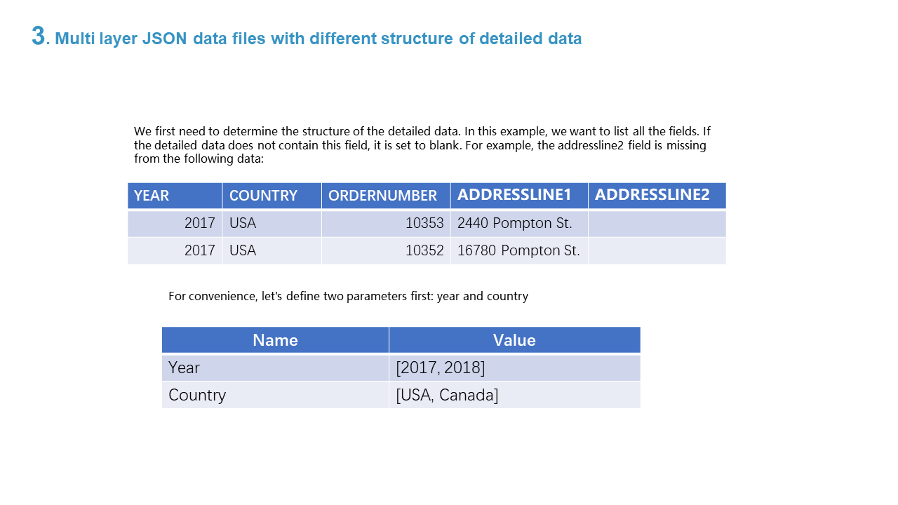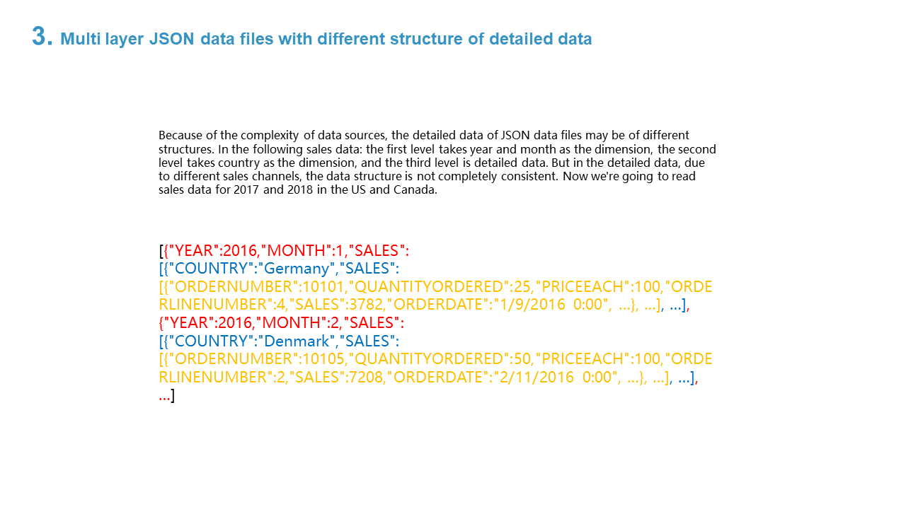 3. Multi layer JSON data files with different structure of detailed data