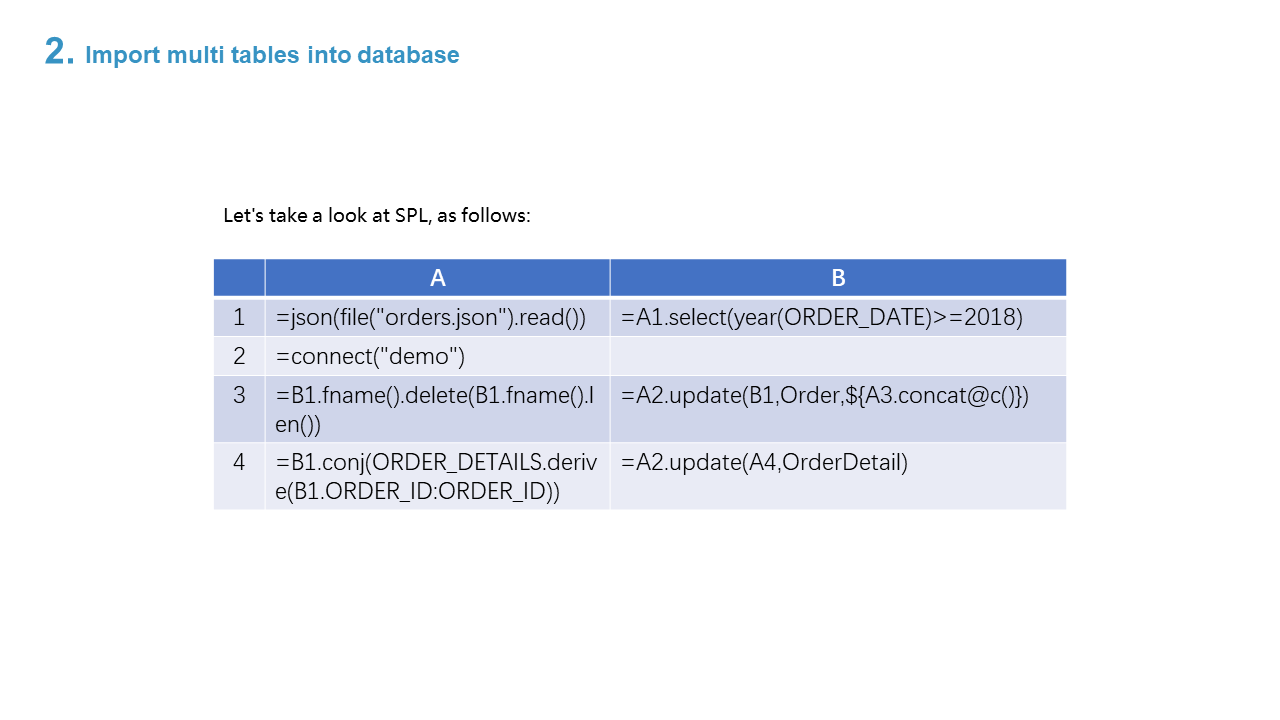 2. Import multi tables into database