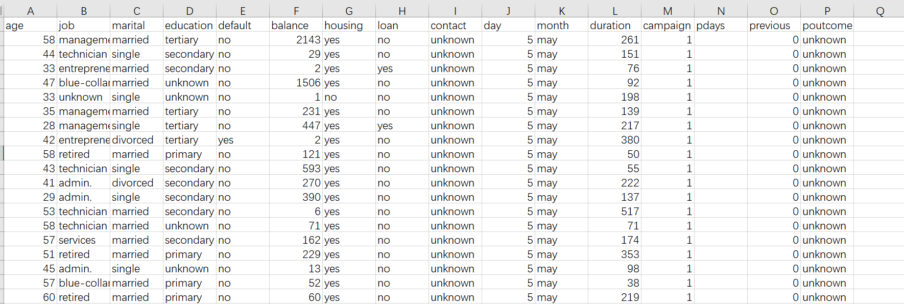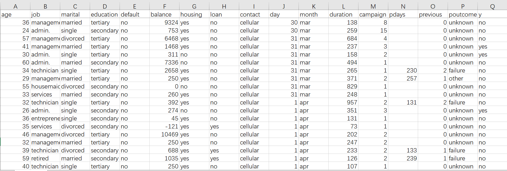 The historical data is generally displayed in the form of a wide table, as the fowling Excel worksheet shows. We want to predict if users will make default according to some of their basic information.