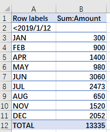 Pivot tables will not create groups for values that are missing in the grouping basis. When we group the sales table where there are no sales records for some months by date using pivot tables, we get the following result:
