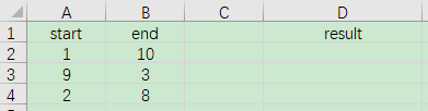 The A and B columns of the Excel file book1.xlsx are natural numbers, which represent the start and end points of the sequence, as shown in the following figure: