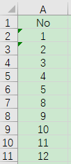 There is a column of serial number No in the Excel file book1.xlsx, as shown in the figure below: