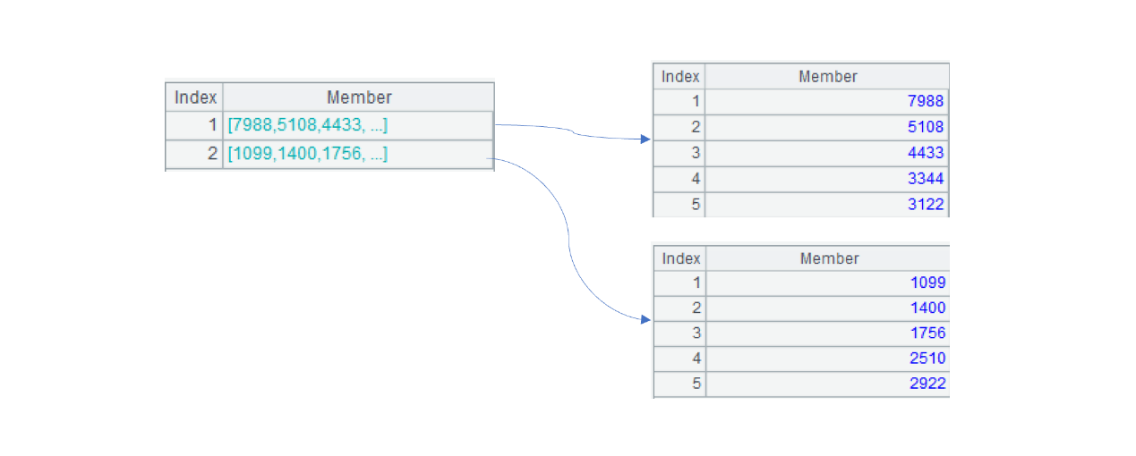 A2: groups(y;top(-3,x), top(3,x) groups data by y field and calculates the largest 3 and smallest 3 separately in each group. As the cursor function does not explicitly define the number of parallel threads through a parameter, it generates a multicursor automatically according to the maximum number of parallel threads in the system configurations. We can use top(-3,x):top3 to rename fields in the result set.