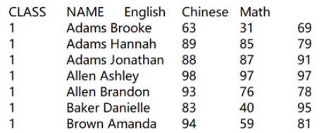 =file("d:/txt/scores.txt").export@t(A1,CLASS,Name,English)