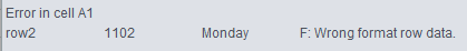 In this file, data type of value in the third column in the second row is wrong and the third row does not have a fourth column.