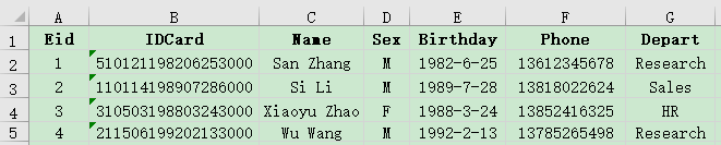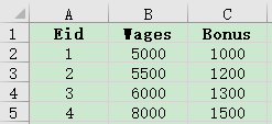 There are employee information table (employee.xlsx) and salary table (salary.xlsx). Both use Eid as the primary key. Below are parts of the tables: