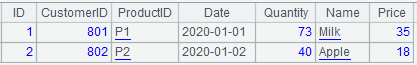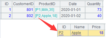 The switch function cannot be used for multi-foreign-key association. Instead, the join function should be used to do that. Suppose the Prices are different for different types of packaging, and we add a Packing field to both the product table and the orders table. Now the product table has a composite primary key of ID field and Packing field. Below are parts of the two tables: