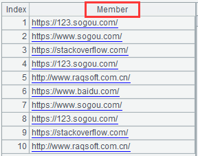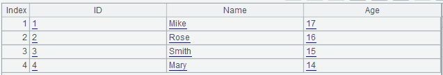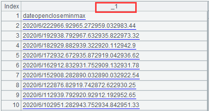Cursor will be read as a table sequence with multiple columns by default. In the example above, each row corresponds to a member without splitting, then use the option @s to specify not to split by field and directly return the table sequence containing each member. The red box in the picture is the default field name that generates the table sequence, as shown below: