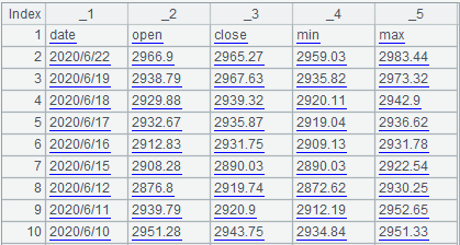 =file("d:/stock.txt").cursor@s().fetch(10)