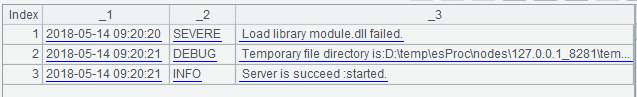 | 1 | =file("D:/raq.log").read@n() | open the log file and read the contents as a sequence by line |