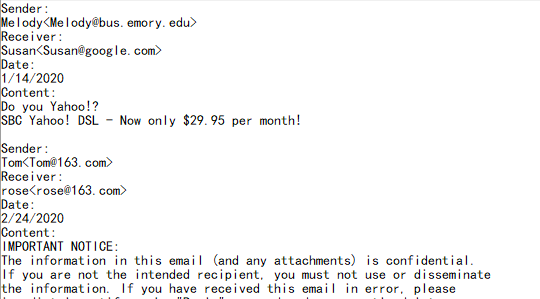 The following content of the mail is not fixed, so the non-fixed data lines need to be parsed to a mail record:
