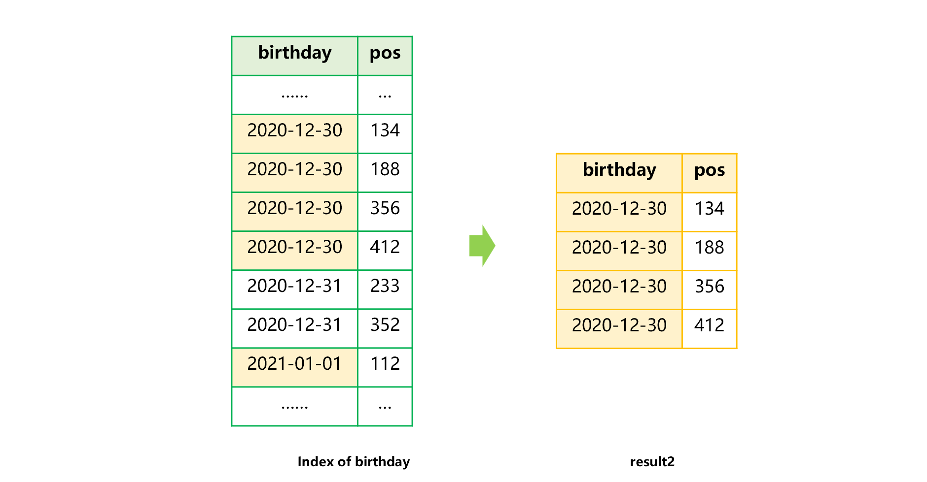 Similarly, using the birthday index can quickly locate 2020-12-30, as shown in Figure 4 below: