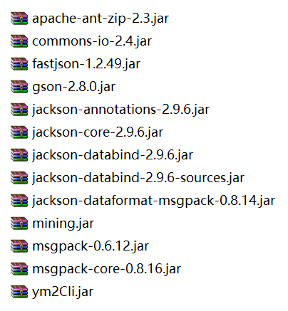 Find the following jar files in the installation directory of YModel and copy them to an external library folder, such as “C:\Program Files\raqsoft\esProc\extlib\Ym2Cli”.