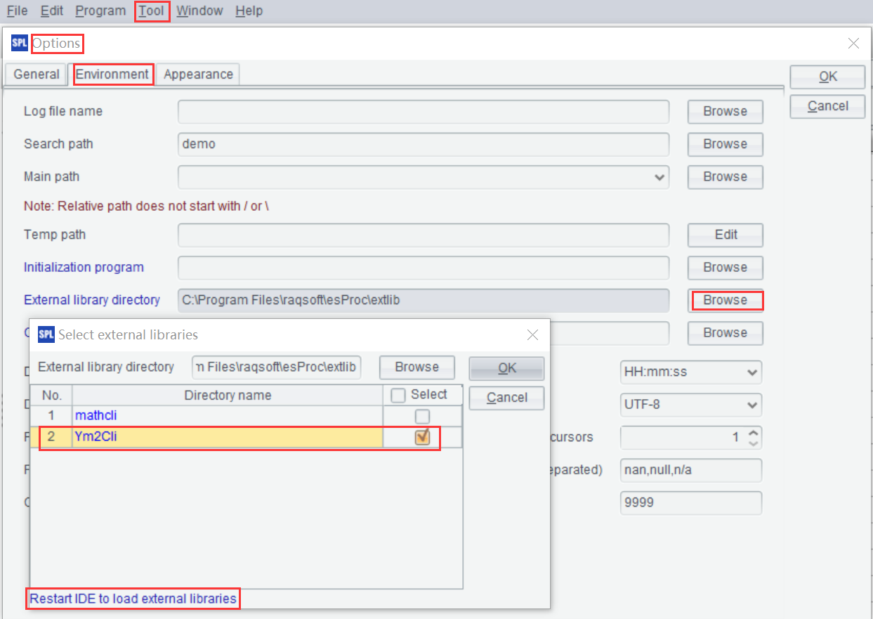 Open SPL, and go to Tool > Options > Environment, then check YModel external library in Select external libraries. Restarting your computer will make the changes take effect.