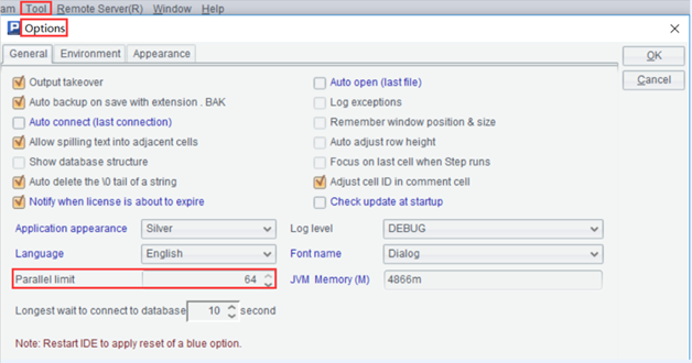 For servers without GUI, the parallel limit can be set in the file ‘esProc\config\raqsoftConfig.xml’, which is under the installation directory of esProc.