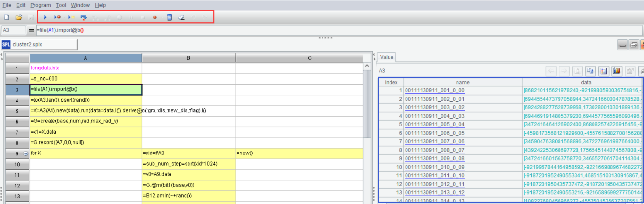 In addition to the basic algorithms, SPL also easily implements two clustering algorithms - split type clustering and stepwise clustering. Although the logics of both clustering algorithms are still relatively complex, the core code in SPL only occupies a dozen cells. If C++ or Java was used to implement such algorithms, it would probably require hundreds or even thousands of lines of code.