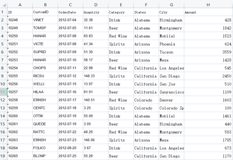 The xls file contains all sales data. The requirement is to generate results by different dimensions and put the data of each of States into a separate xls file.