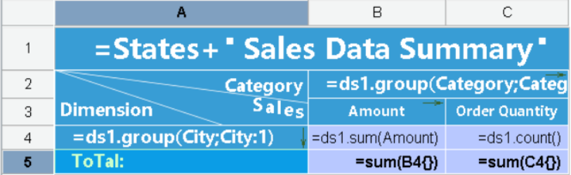 | 6 | =reportlite_export@xn(A3,"E://salesdata//"+A5.States+"salesdata.xlsx") |