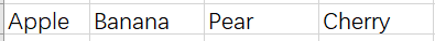 | 1 | =[“apple”,“banana”,“orange”,“pear”,“cherry”] |