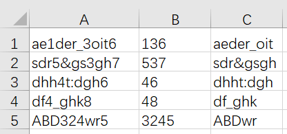 5. There is a column of data in the Excel file that contains a mixture of characters and numbers, where numbers and characters may appear in multiple places with varying patterns of occurrence.
