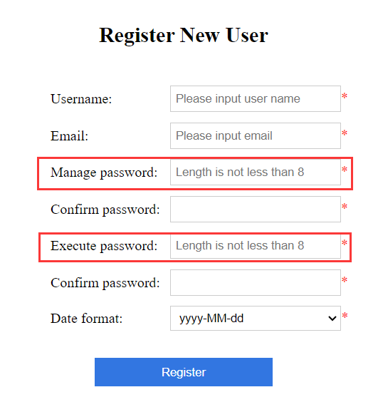 The registration process is simple. But note that there are two passwords for one account (username). One is the “manage password” and the other is the “execute password”. The two cannot be substituted for each other. The “manage password” is used to log in on the management side and manage the account and service; the “execute password” is typed in QVS configuration file to enable QVS to access QVA for getting QVM and executing the script.