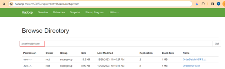 We can also view the uploaded files on HDFS web console: