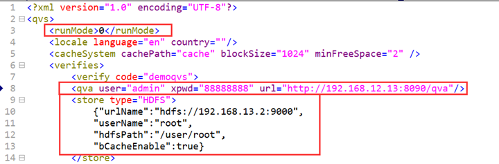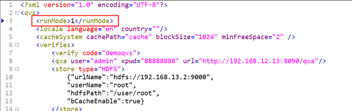 3) Comment out < store > node to use QVS local file storage instead of the remote storage. But the node can also be retained to use both local file storage and remote storage. The latter enables the maximum compatibility.