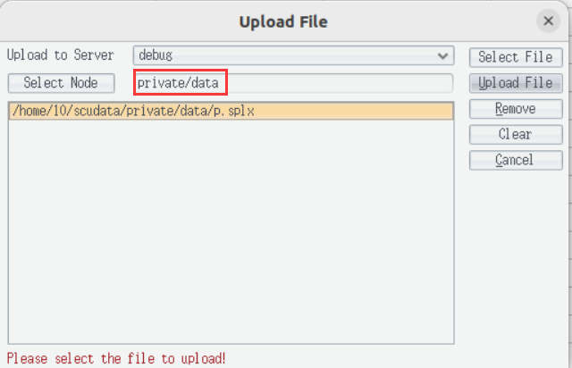 First, create a directory namesake with that in HDFS (such as private) in IDE main directory, copy the nely-edited QVM script* remote002.splx *to it, and then execute the following uploading script in IDE: