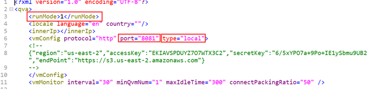 1. Edit QVS settings. The configuration file path is esProc installation directory\esProc\q-server\webapps\qvs\WEB-INF\home\qvsConfig.xml. Three items need to be modified: