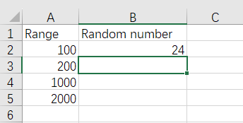 In the Excel file below, the 1st column is the range of random numbers, and the 2nd column generates a random integer within the specified range: