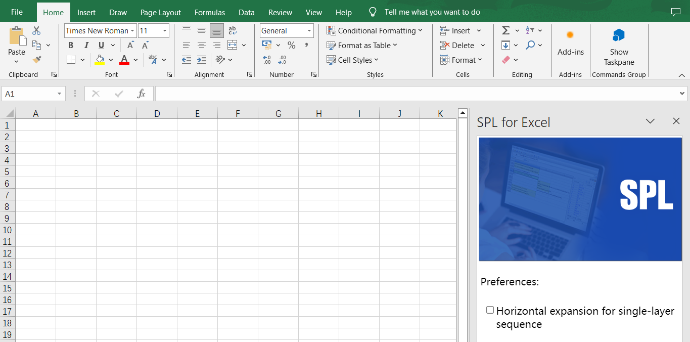 Default expanding mode for Office add-ins is vertical. Check【Horizontal display for single-layer sequence】through【Start】-【Add-ins】-【SPL for Excel】 in Excel to change the expanding mode to horizontal expansion.