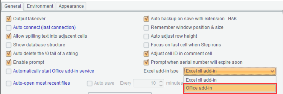 Check 【Auto-Start Office add-in service】 and restart IDE to automatically start the Office add-in service at the startup of SPL IDE.