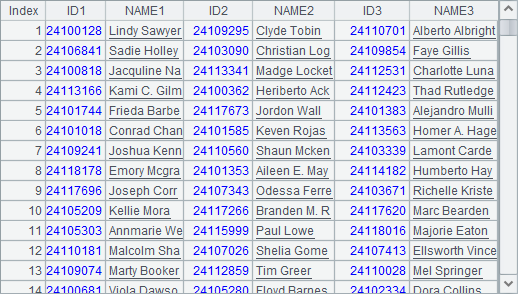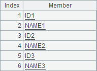 | 2 | =B1.([“ID”/#,“NAME”/#]).conj() | =create(${A2.concat@c()}) | =B1.(“B4(”/#/“).m(#B5).ID,B4(”/#/“).m(#B5).NAME”).concat@c() |