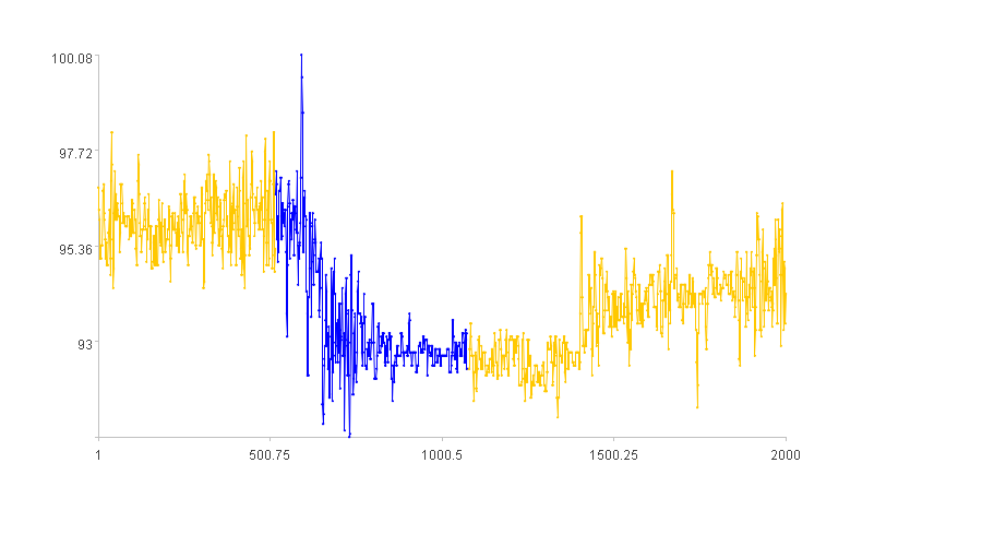 The time series data remains unchanged. Discover the curve segments that first fall then stabilize.