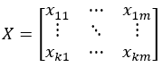 Where k is the number of samples and m is the number of inputs, xij is the j-th input for the i-th sample, Xri represents all inputs for the i-th sample, and Xcj is the j-th input across all samples.