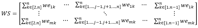 (2) Calculate the matrix WS, formed by the sums of the vectors in WE excluding the j-th column: