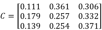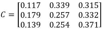 We can see that, for C1, the yield of the 2nd output is maximal among the three centroids; for C2, the yield of the 1st output is maximal; and for C3, the yield of the 3rd output is maximal. Furthermore, the indices of these maximal values, [2,1,3], exactly correspond to Sidx.