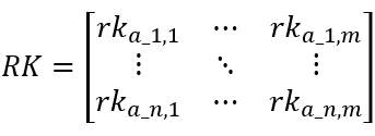 Cbt=Xh,h=pmax(rka_ti-sum([rka_1i,rka_2i,…,rka_(t-1)i,rka_(t+1)i,…,rkni])),i∈[1,2,…,m]\s,t∈[1,2,…,k]