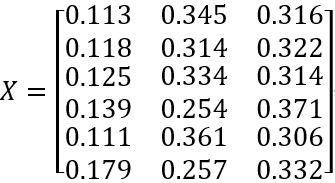 | 1 | [[0.113,0.345,0.316], [0.118,0.314,0.322], [0.125,0.334,0.314], [0.139,0.254,0.371], [0.111,0.361,0.306], [0.179,0.257,0.332]] |