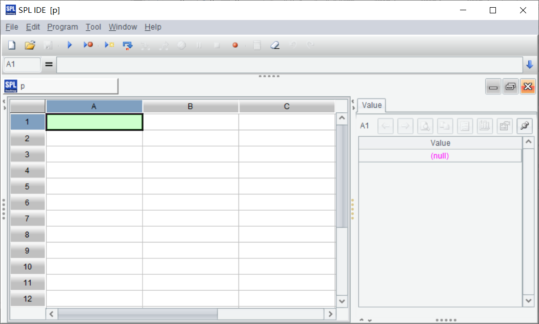 Click File/New on the SPL IDE’s main interface, we get an Excel-like grid-based interface: