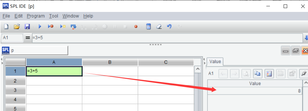 =3+5 is like an Excel expression. In SPL, arithmetic operations Excel supports can all be computed. Try computing more arithmetic operations and find their similarities.