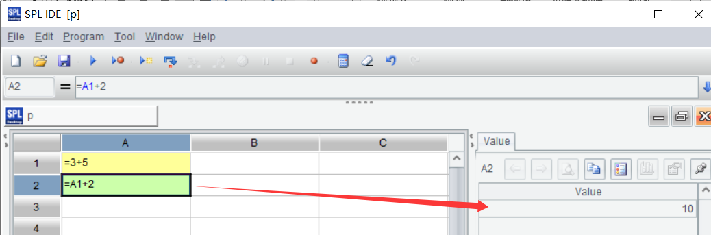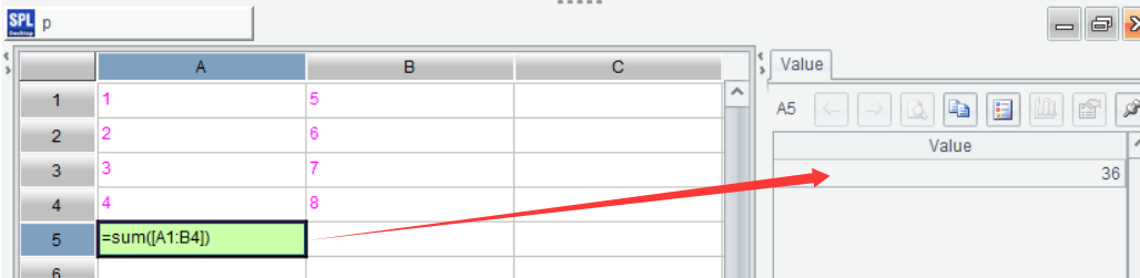 In Excel, result of a cell is directly displayed in the cell; in SPL, a result is displayed on the right part of the interface.