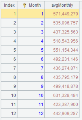 | 3 | =A2.groups(Month;avg(TotalAmount):avgMonthly) |