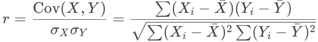 - It measures the linear correlation between two variables X and Y.