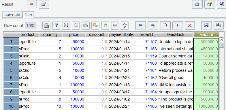 Like what we did in Section 2.2 and Section 2.3, perform filtering to get records in the year 2024 and add amount column named amount through adding a computed column: